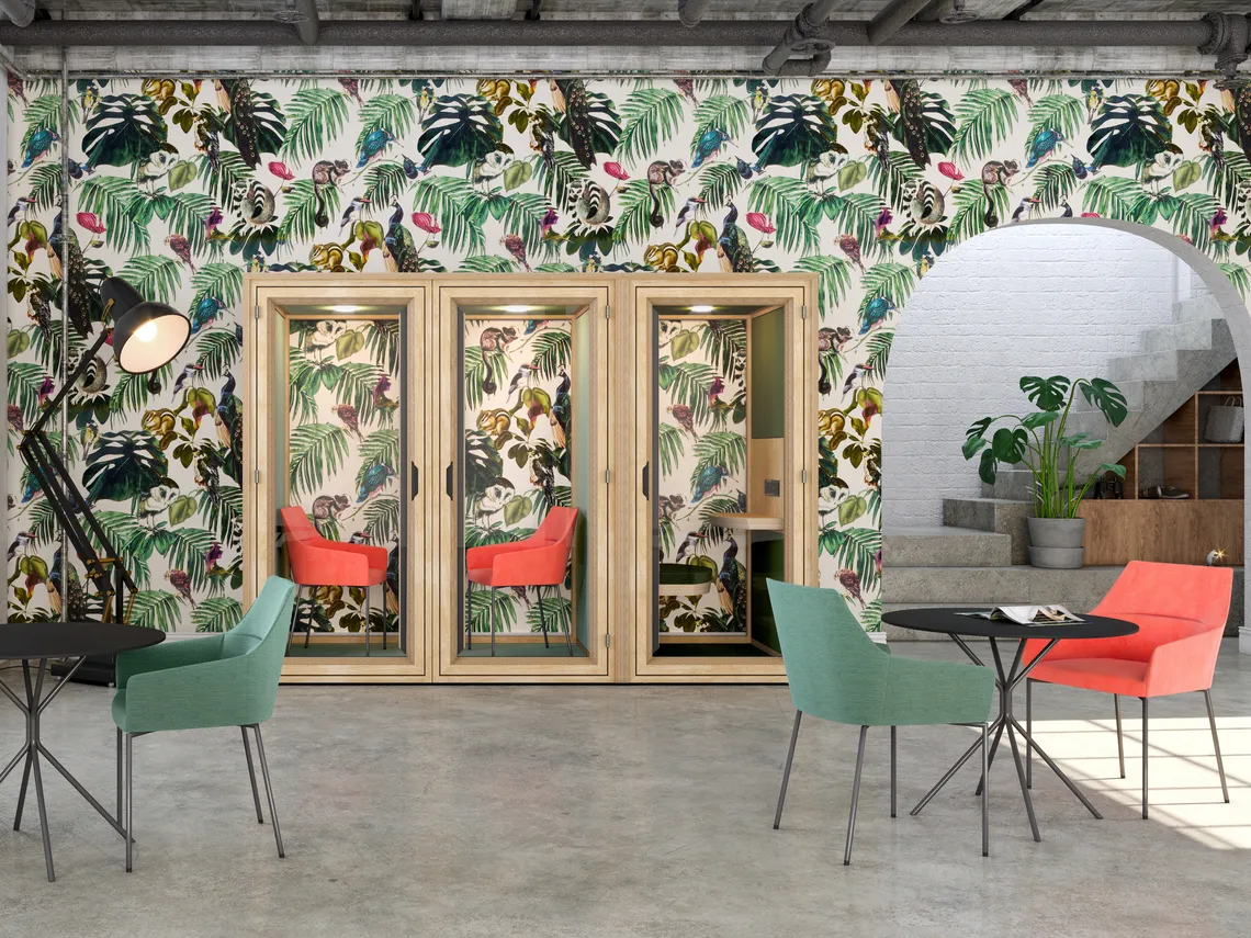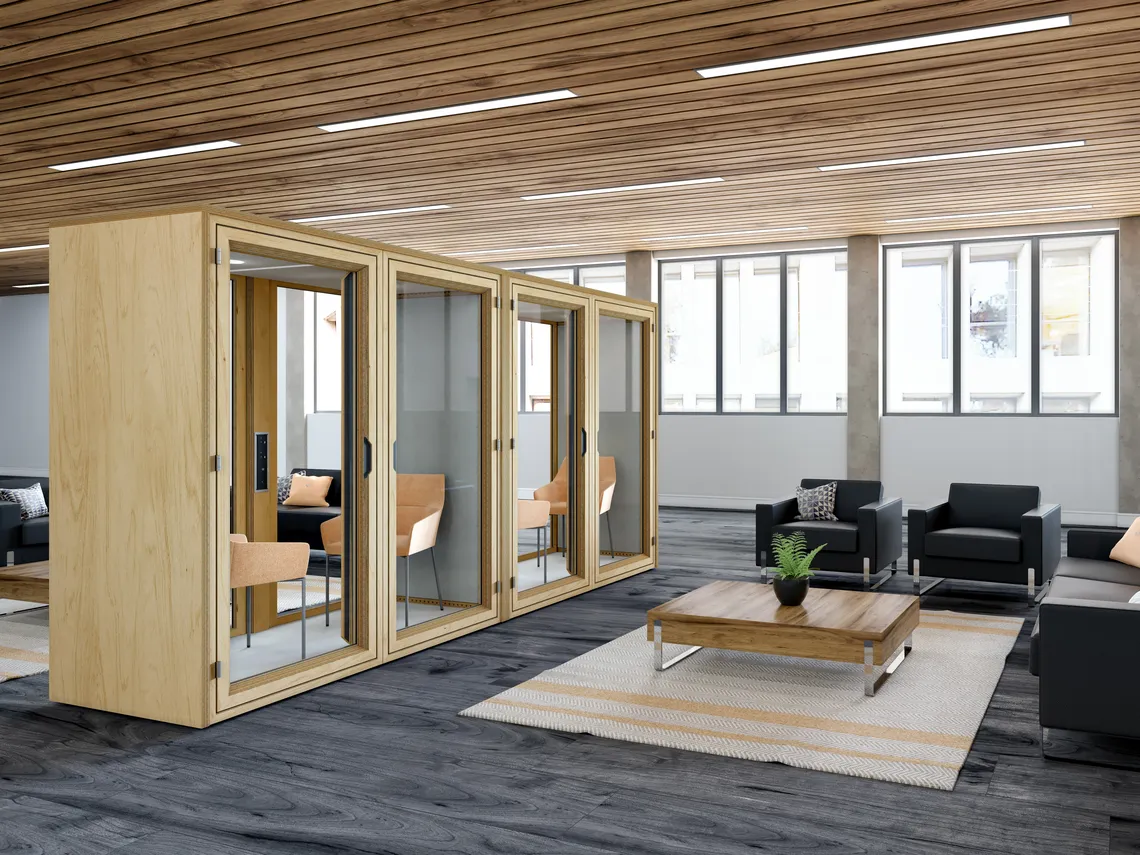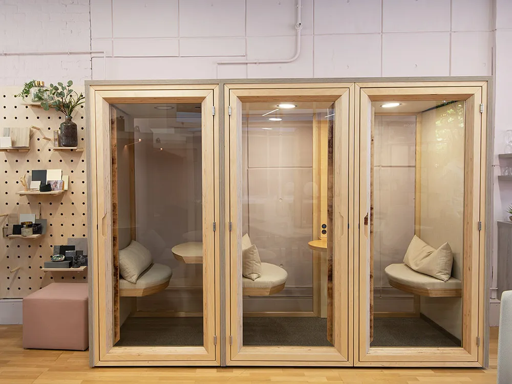 Our Residence range is designed with both the principles and the design aesthetics of great residences in mind: they allow communal space to flow in and out of private space; they’re airy and predominantly made of glass, allowing light to continue to shine through the workplace; and their birch plywood finish provides that raw, natural aesthetic so beloved of the Eames. With these Work and Meet pods in place, you’ll soon have a workplace that’s bright and open but also peaceful and quiet – just like the Californian residences that continue to inspire us.