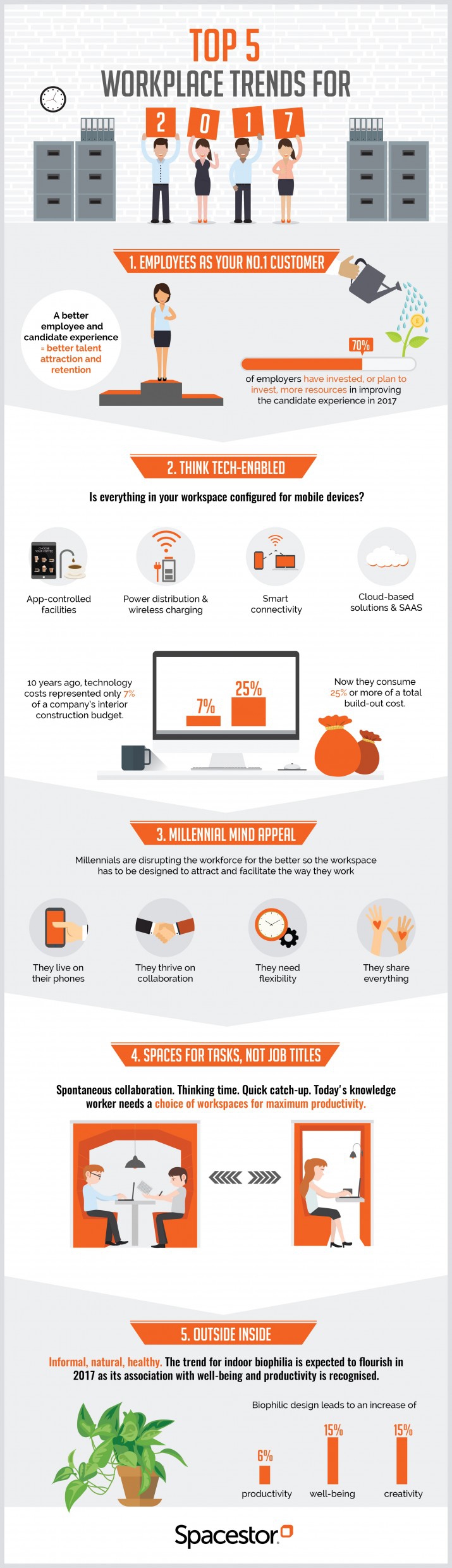 1. Employees as your No1 customer The biggest trend to follow on from 2016 is the employee and candidate experience leading to talent attraction and retention. This trend will increase in 2017 as more and more companies are realising the connection between a positive employee experience and hiring the best talent. In a recent candidate experience study by workplacetrends.com nearly “60% of Job seekers have had a poor candidate experience and 72% talk about it”.