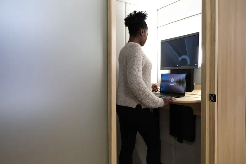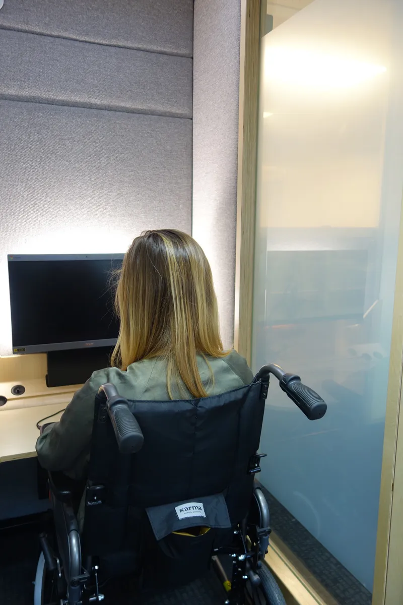 The easy-to-use buttons and knobs, make the pod intuitive to personalise. Lighting, ventilation, desk height and screen height can all be adjusted at the press of a button to create a tailored environment suited to your needs.