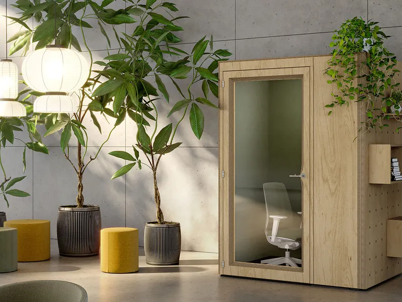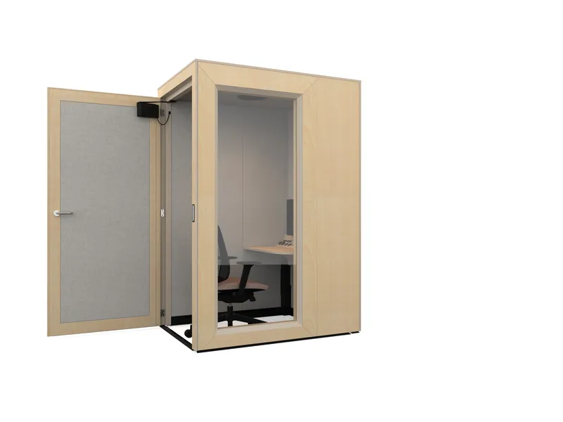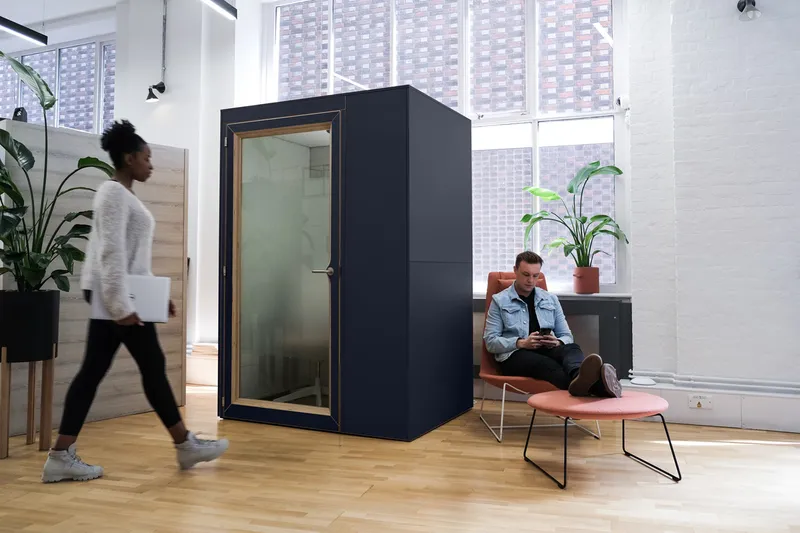 Only hearing half of a conversation is proven to be far more distracting than a dialogue between two people. This is because our brains constantly try to predict the inaudible other half of the conversation, hindering our ability to focus. It’s not uncommon to see a whole meeting room in use for a video conversation, whilst this removes distractions from the open space, the misuse of a large meeting room reduces the spatial capacity for face-to-face collaboration in the workspace. A sound-proof pod is a perfect, space-efficient solution to this growing trend. However, most pods have primarily been designed for quiet focus work. A pod designed for communication is quite different. Not only does the acoustic quality of the pod need to be optimized, but so do the finishes of the interior, support the visual representation of all people on camera, regardless of skin tone and clothing choice.