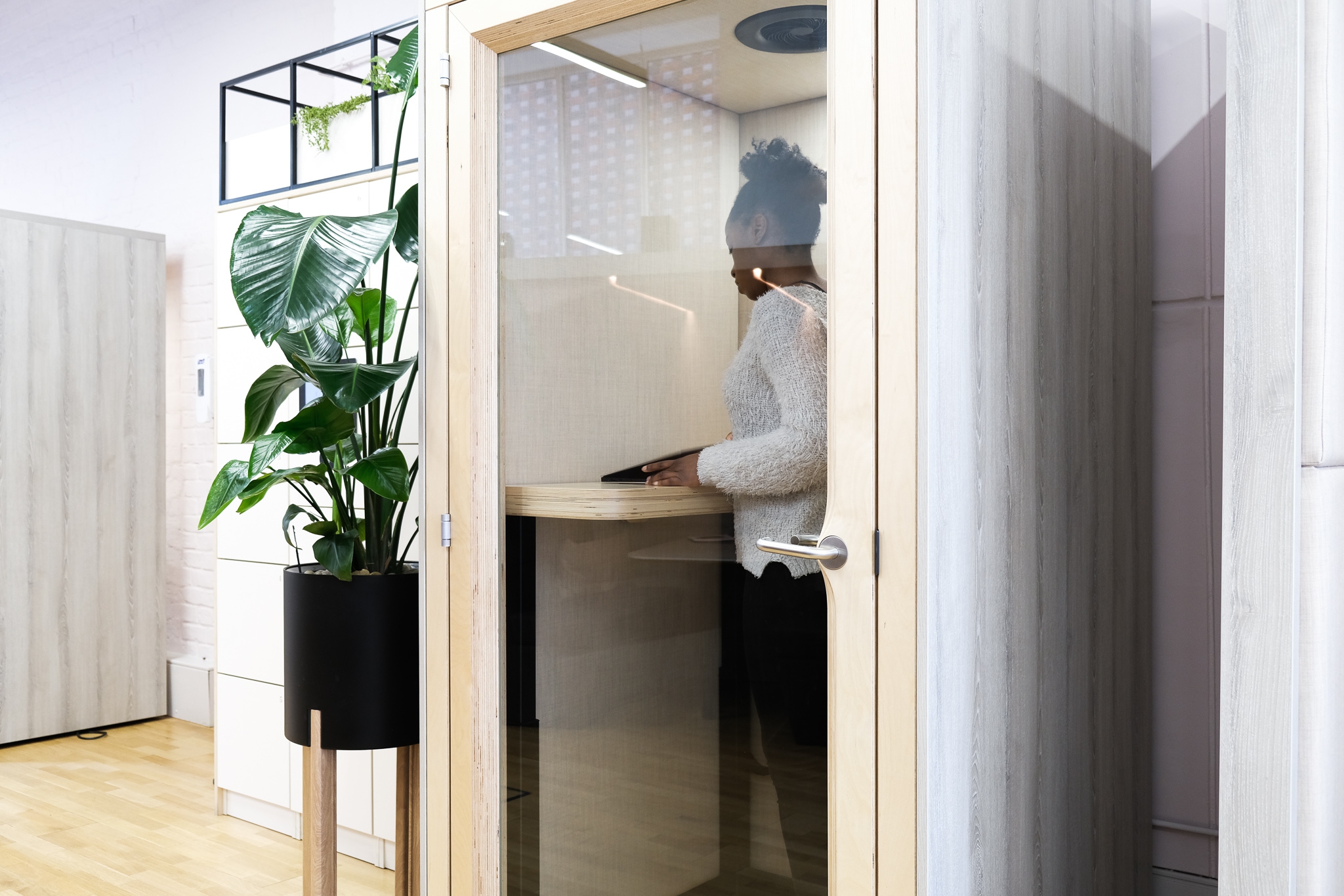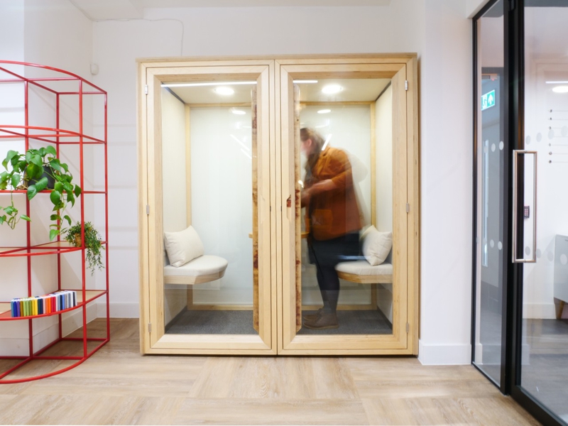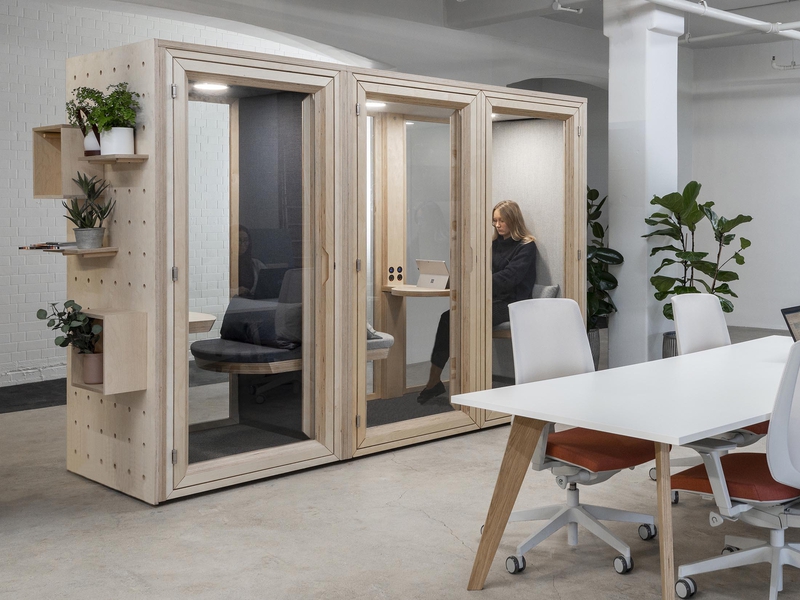 A 1-person, private booth for focus work or phonecalls