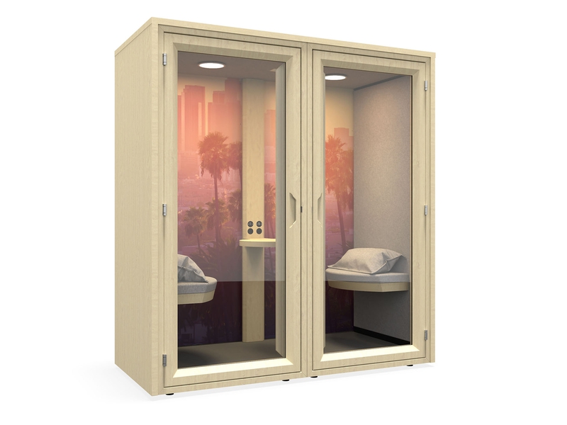 Dedicated quiet spaces are a necessity within the high-tech buzz of the modern working environment. Sometimes you just need to be alone. Whether you’re in need of a solitary space for private conversation or high focus working, the modern workspace provides little facility for this, with greater emphasis on open-plan collaborative and social zones, rather than individual spaces for quiet, uninterrupted working. Drawing on the rich design heritage of California, the Residences range creates iconic enclosures within the workplace, providing a serene sanctuary. Inspired by the beautiful ‘residences’, modern, innovative houses built by leading architects throughout the 20th century, these space-efficient pods provide private space using a minimum floor area. The range comes with glazed panels, allowing light to continue to shine through the workspace. The birch plywood finish provides a raw, natural aesthetic contributing towards the need for a sanctuary, inviting people to a serene space through biophilic design. Available as an individual pod, configured for either standing or seated working positions, or as a private meeting space for two people. The Residences range boasts extremely high acoustic quality, has a constant flow of fresh air with built in air vents and a highly adaptable design with a huge range of finishes options.
