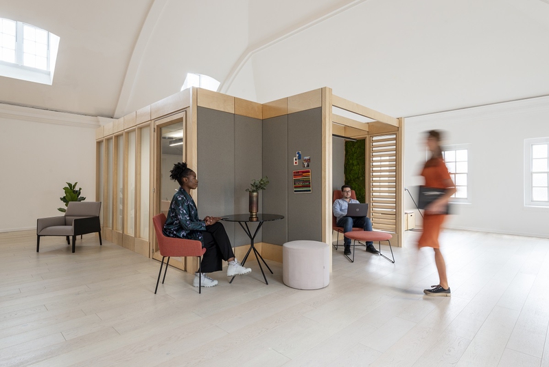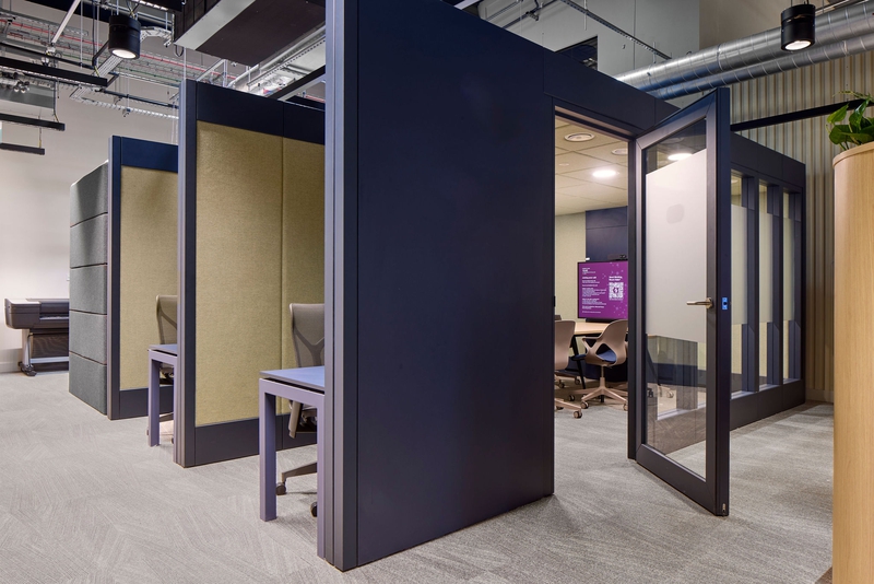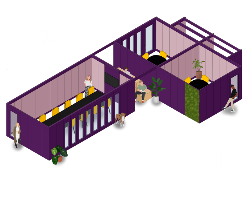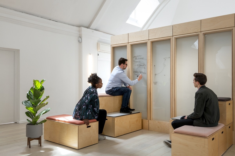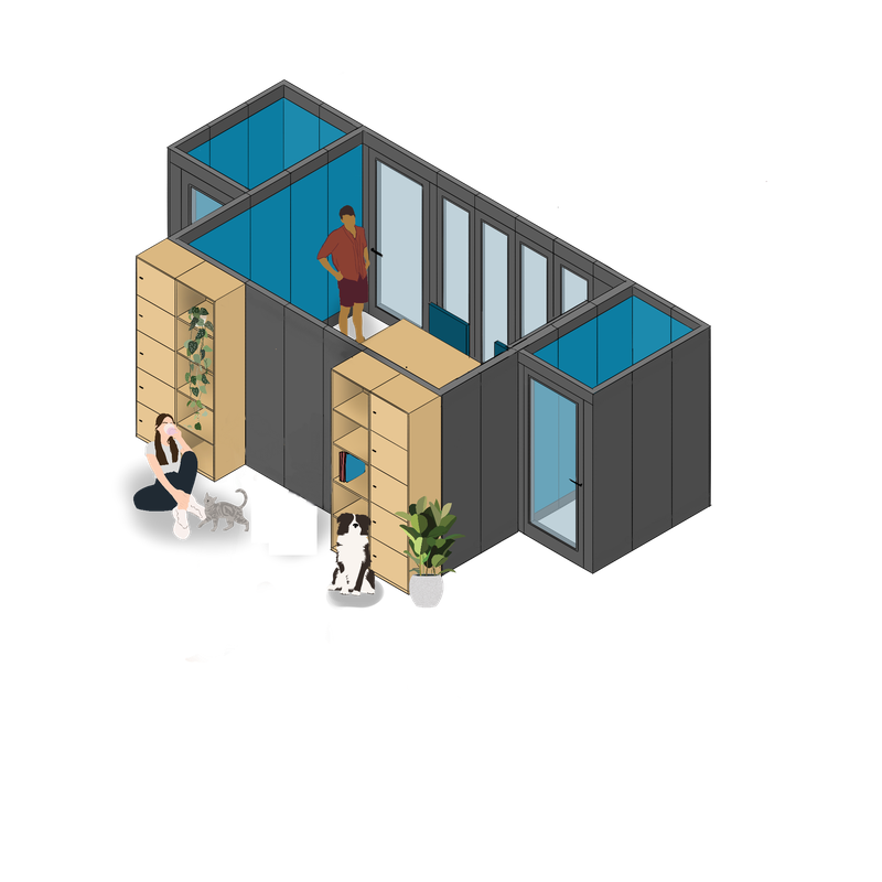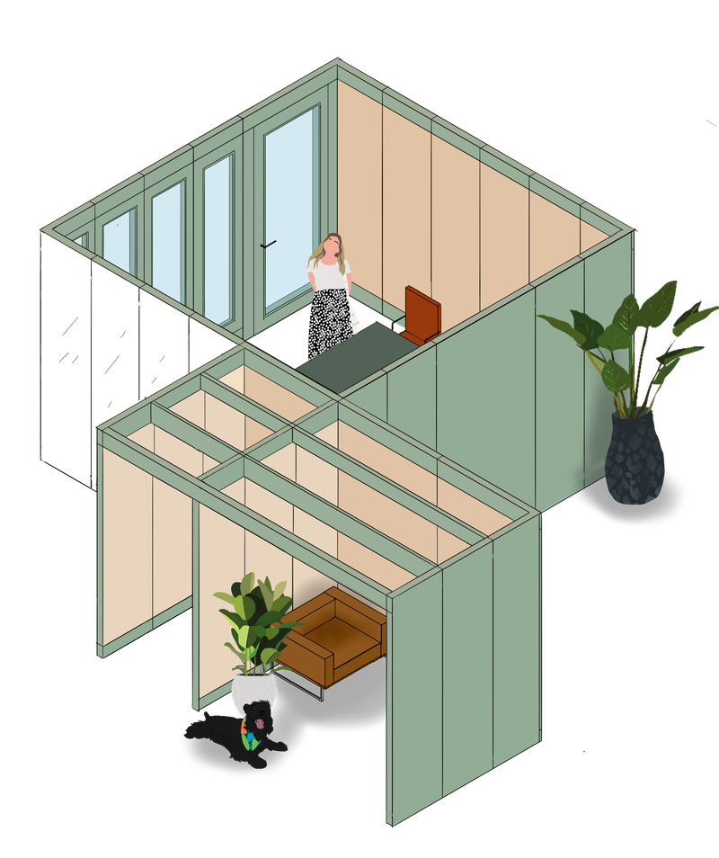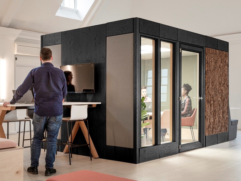 Verandas is essentially a kit of parts that can flex and adapt to the evolving needs of any organisation. The framework can grow to almost any size, from an individual pod to a 12 person meeting room and beyond, adapting and flexing in tandem with any team. The high acoustic qualities of each panel means the exterior walls can be activated to form additional work settings like scrum spaces, touchdown zones or even storage areas.