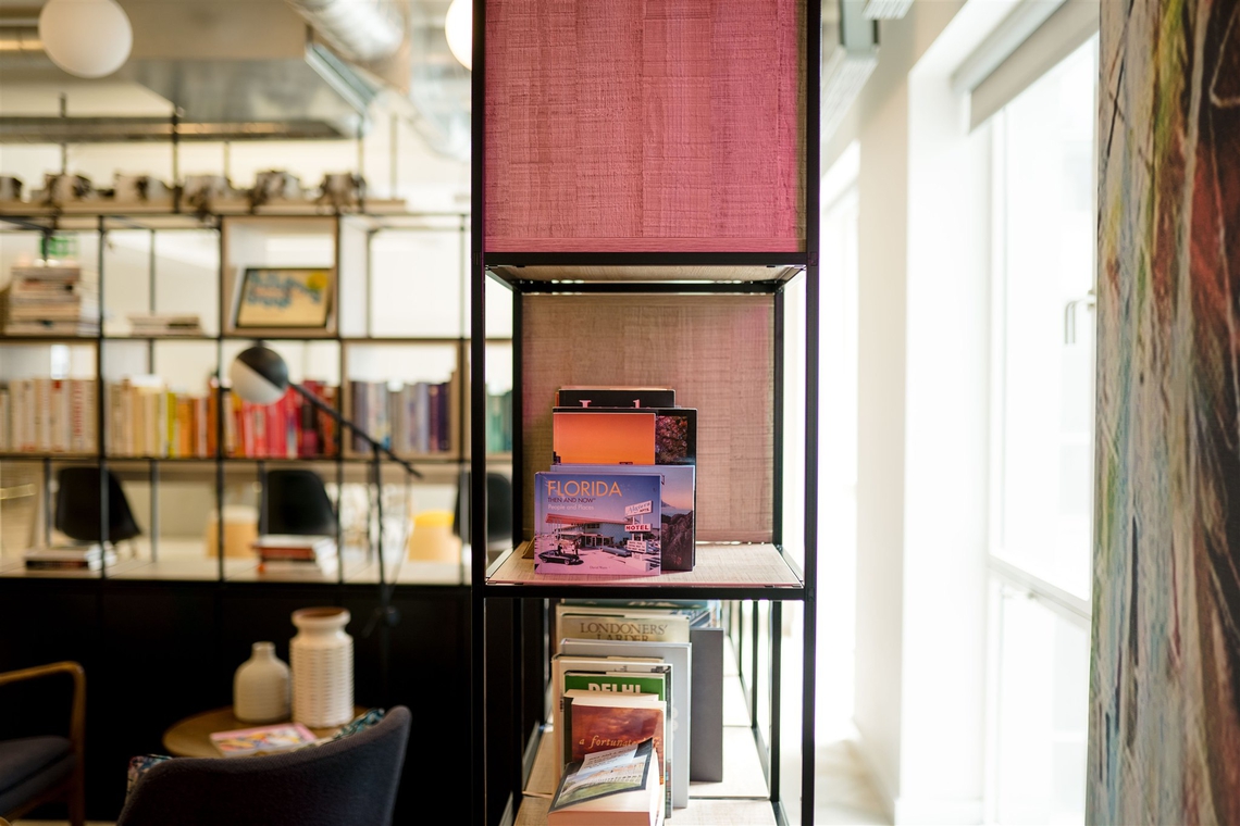 To complement this resimercial design concept, we were asked to provide our Palisades II product to allow them to showcase their impressive array of books and magazines. A pod from our Residence range provides a quiet sanctuary amongst the buzz of the modern office, where employees of Anthemis can find a solitary space for focus work or a private conversations. Finally our Bleacher seating is perfect for providing chance collaborations, bridging the gap between a meeting room and an auditorium-style space.