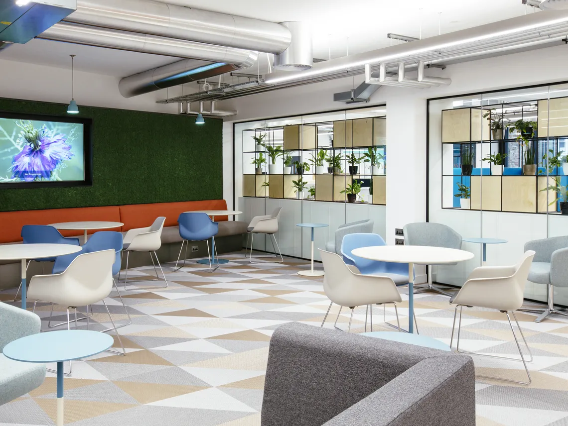 Arthritis Research UK asked for a layout that would promote wellbeing and facilitate flexible working practices – particularly for those with arthritis. In response, AIS came up with a mixture of open-plan project spaces and more private, relaxing rooms, all of which revolve around a breakout area and refreshments station. “The central location of the breakout area,” explains Workplace Designer Elaine Mitchell, “has created a real hub of energy within the space that people are drawn into, it’s a space for collaboration, relaxation and social gathering.” Furthermore, AIS chose to make use of the many health and wellbeing benefits of biophilia – a subject we’ve blogged about before – by including lots of plants and natural elements.