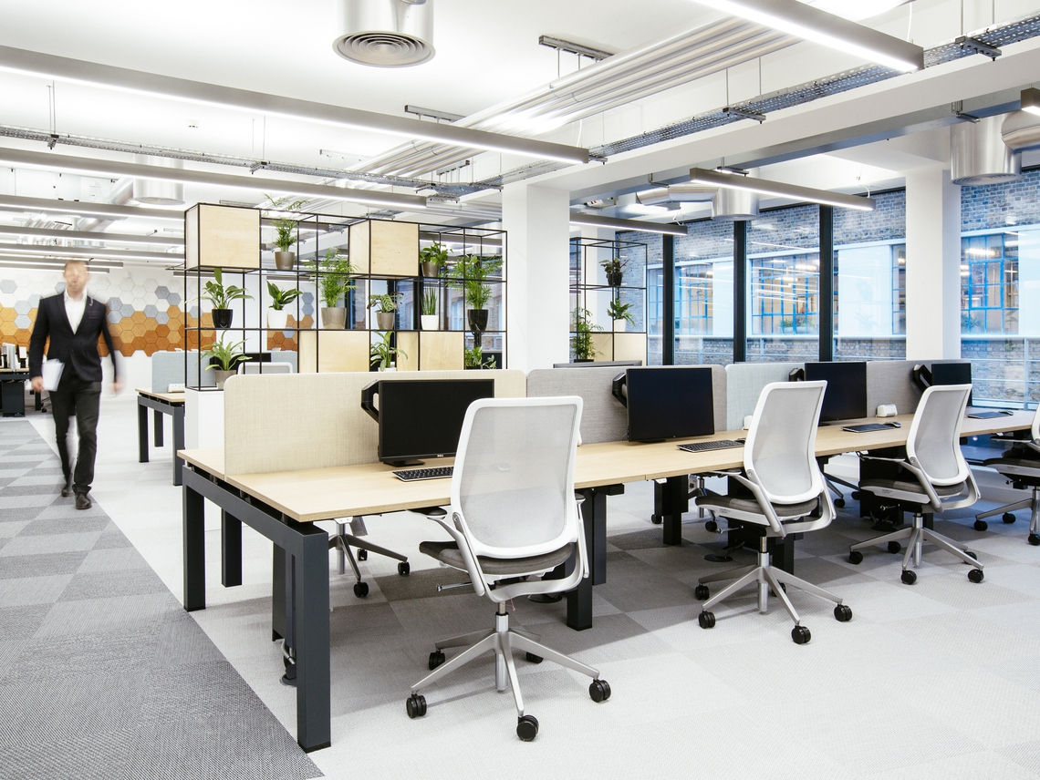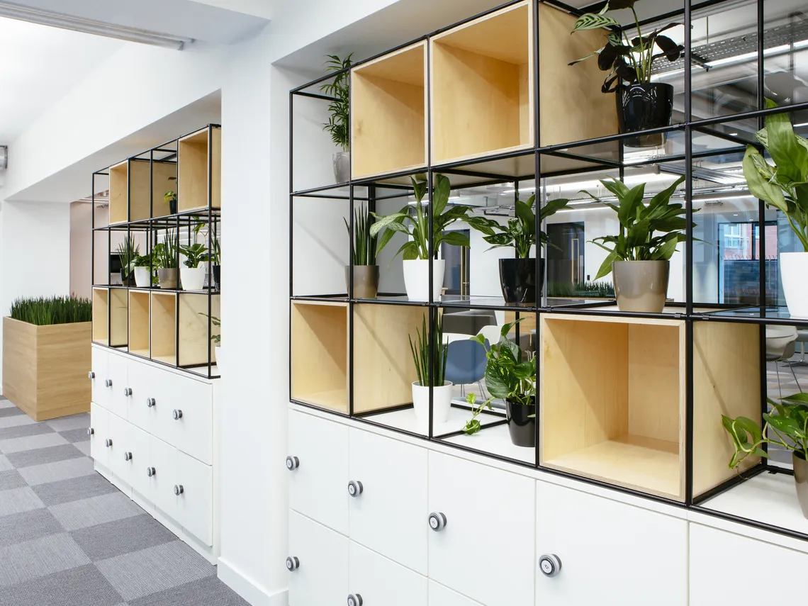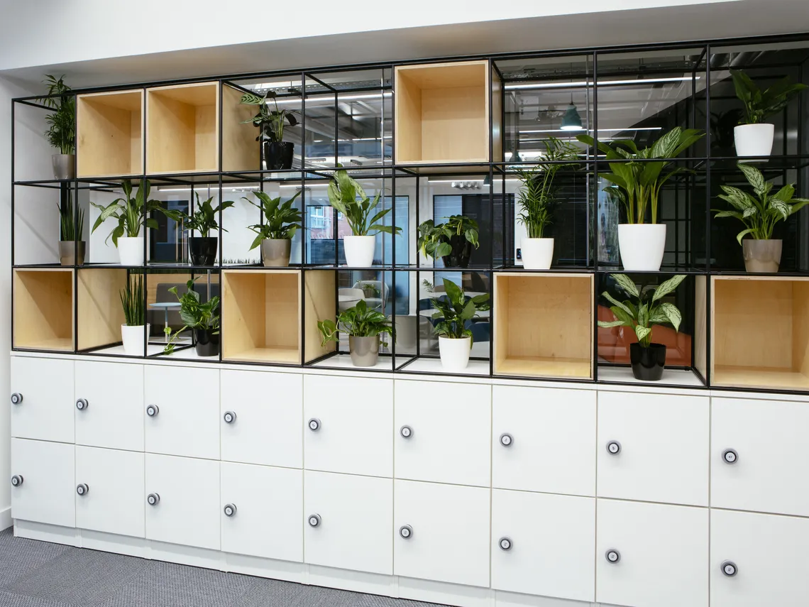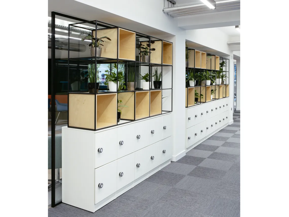 So, the office needed to remain agile, incorporate a variety of zones and have plenty of space for potted plants. The solution to all of these needs? Our Palisades Grid system, which was used to divide up the different zones without blocking the sunlight and also to house and display plants in a calming, harmonious way that contributes to the healthy atmosphere.