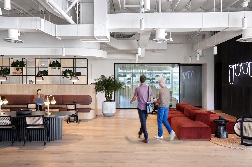 “In South Bay,” explains Peter Van Emburgh “Part of that experience comes through in-office technologies like enhanced video conferencing that helps in-person and remote workers to collaborate like they’re in the same room. Other features cater to neurodiversity, such as the office’s 14 different work environments to accommodate a wide range of work styles to fit users’ diverse needs on a given day.”