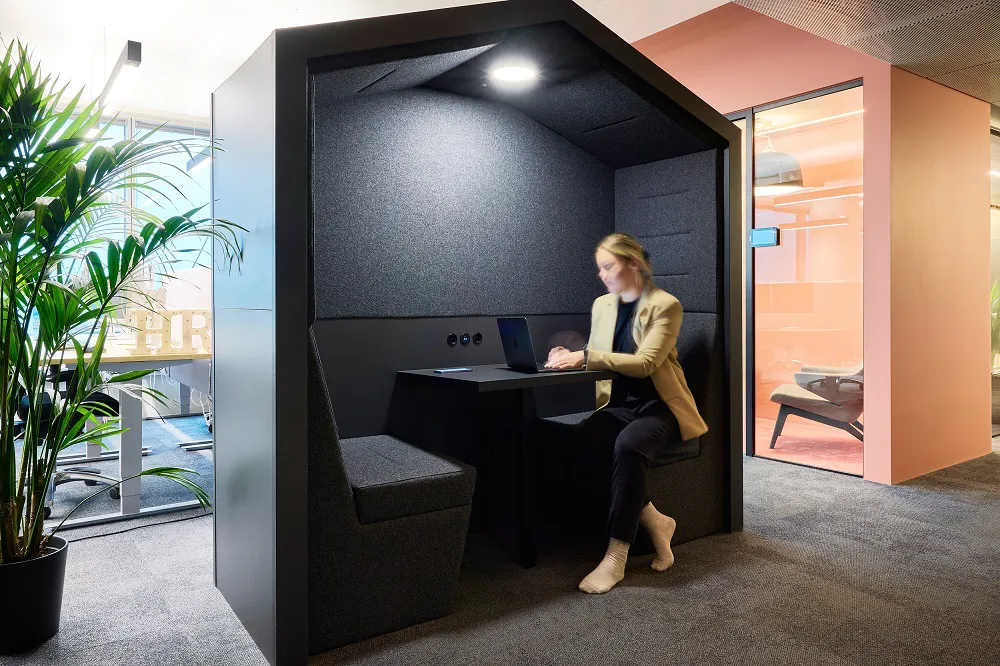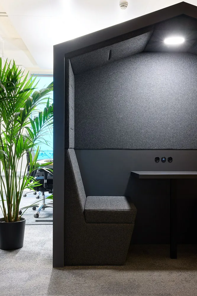 This Spacestor booth has become a cornerstone element in Fujitsu spaces and Olly as outlines "The Railway Carriage for us is a really important design element, not only is one of the most used settings it is also one of the most versatile whether it is for formal, informal or social use, We wanted to trial the two seater variation in Tallin and it has proved to be so popular it will become the fresh standard in future projects."