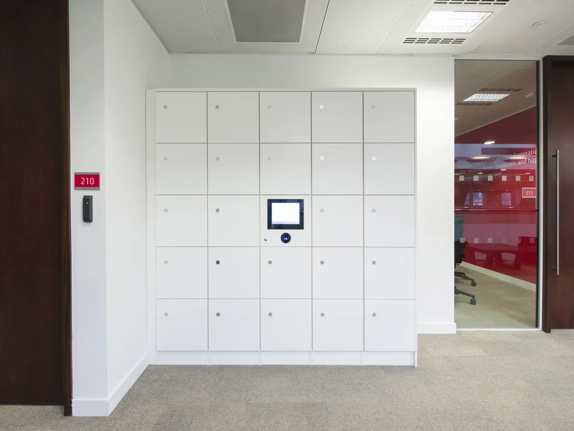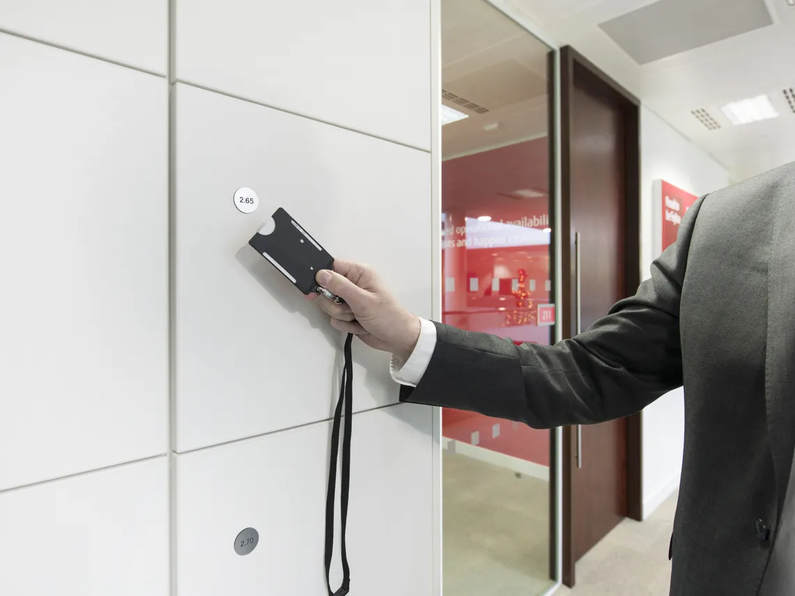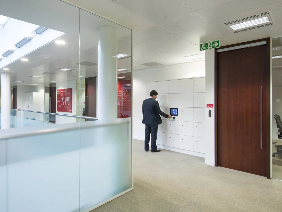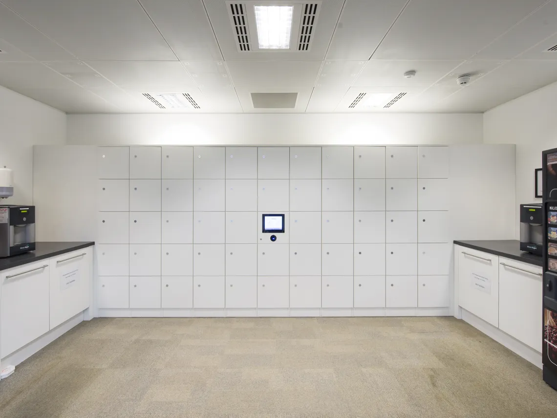 The HotLocker system allows staff to use whichever locker they want, whenever they want – they simply choose one from the self-service terminals and then unlock and lock it using their phone, their bank card or even their oyster card. Furthermore, it also comes with integrated reporting to keep track of who’s used every locker. It’s a highly dynamic and future-proof system, and perfect for a multinational like Fujitsu that wants to provide an integrated, intuitive system for its permanent and visiting staff. In Baker Street, we installed a number of banks of HotLocker lockers in the shared refreshment area and another leading into the open-plan workspace, where they also functioned as a sleek, minimalist zone divider.
