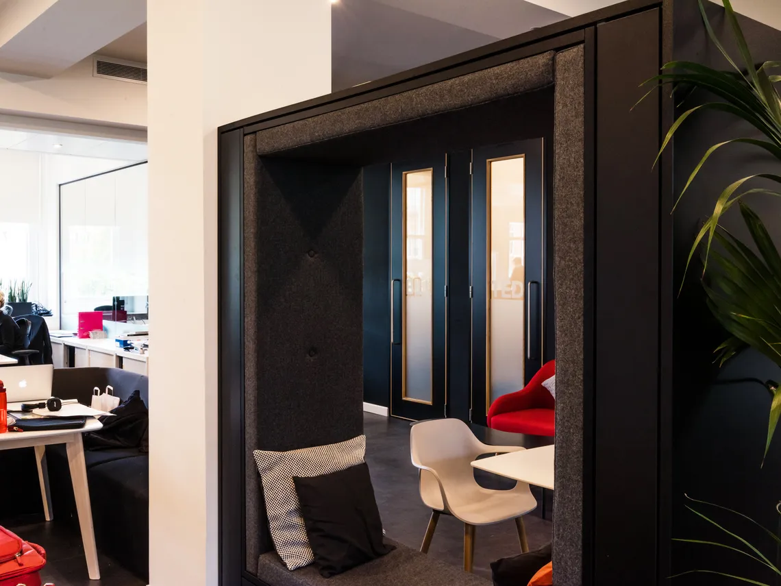 For this project we collaborated with Design & Build specialist Action Workspace to supply a black-clad Snugglestor with dark grey upholstery. M&C Saatchi was founded according to one core principle – brutal simplicity of thought – and we have also long believed in the simplicity and adaptability of good design. This Snugglestor was not recessed into a wall but rather used as a standalone feature, as a zone divider in the open-plan space. Not only can one relax inside of it, the way it’s used here also frames the spaces around it – demonstrating how a simple, modular unit like our Snugglestor can be adapted to all kinds of different needs.