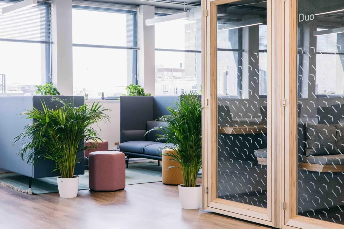 With a strong commitment to sustainability and wellbeing, we were pleased to supply our Residence booths and a curated selection of chairs to this environmentally-friendly design. Using custom graphics on the glazing, our Work pod became a 'Solo' and the Meet pod a 'Duo'; the perfect way to customize our products to reflect the brand of the user. These pods provide the necessary solitary space within the buzz of the office, for concentrated work or a private phone call. Finally our task chair, being 95% recyclable, not only supported their eco-conscious focus, but the chair's ergonomic design provides comfort and ensures employee wellbeing.