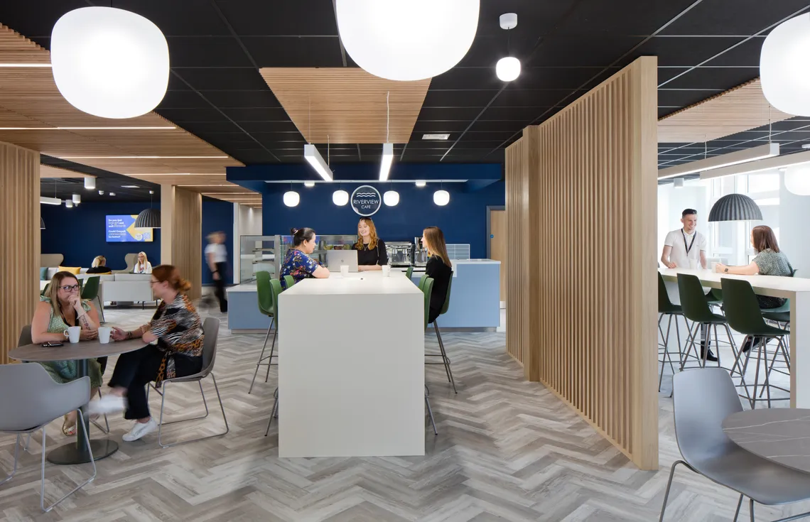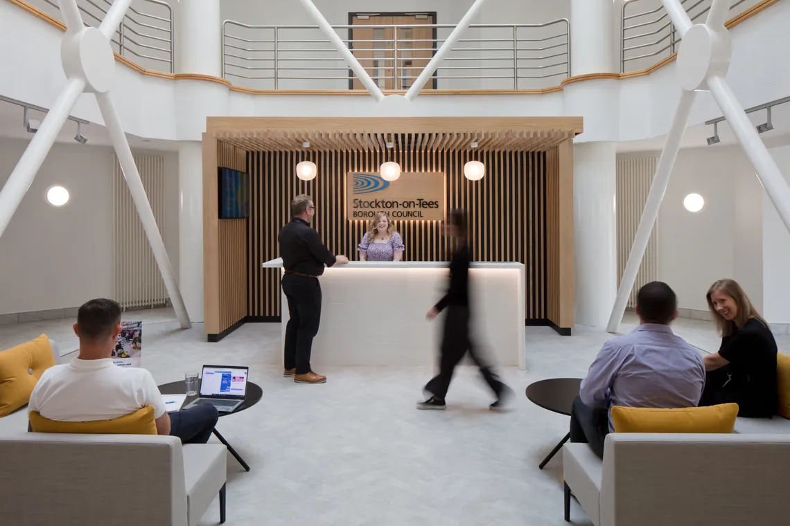 Beyond its intentionally designed office and workspaces, the building features equally considered areas such as the reception, teapoint, and staff canteen. Each space has been thoughtfully finished to create a welcoming, elevated environment that supports staff experience and reflects Stockton Council’s commitment to high‑quality facilities.