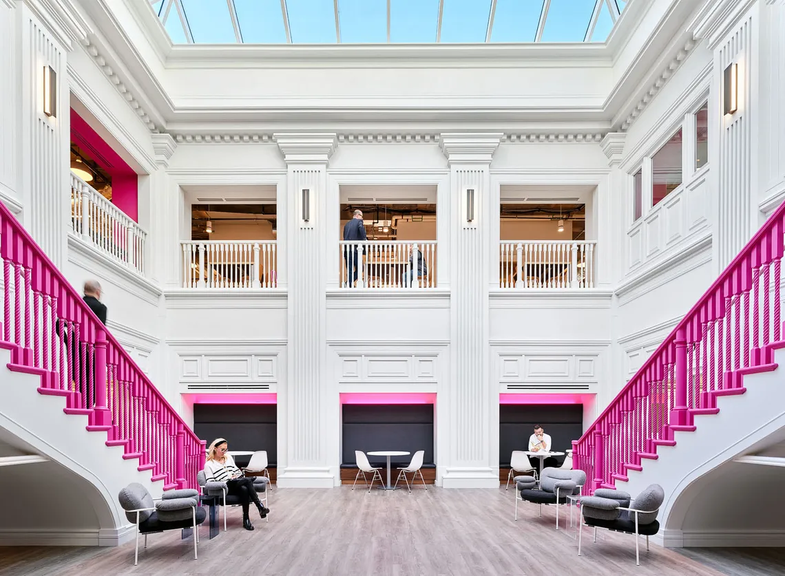 To some, the colour magenta may hark back to the early 2000s, a period full of bright and acidic colours. But for T-Mobile, it exudes an atmosphere of free-spirited fun, passion, and cheerfulness - everything their brand is. The blend of softer greys, striking white architectural details and the highlighted glow of pink, fuse into a subtly elegant, modern aesthetic. Bold graphics and dimensional details create a dynamic flow for a dynamic company.