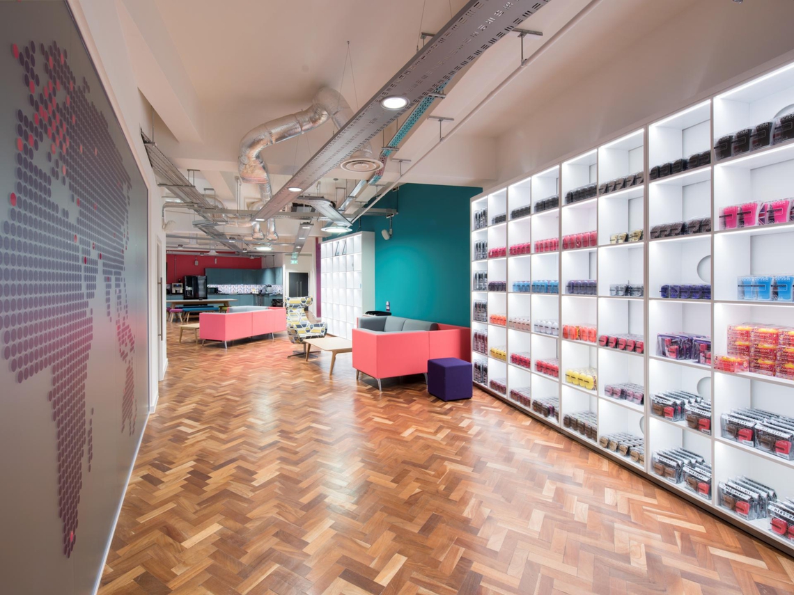 An innovative storage solution for an innovative company was needed, and we certainly delivered! The end-client, Tangle Teezer, is a leading manufacturer of hairbrushes who wanted a unique and creative storage system. Working in co-ordination with Oaktree Interiors, we supplied an incredibly colourful bank of our modular HotLockers. On a background of modern white gloss, we customised the doors with numbers and bright bursts of colour. The final result was an eye-catching locker system that made a bold statement and fitted in perfectly with their quirky office design. We also supplied a number of white Storage walls, which we fitted into some tight spaces – including some curved walls! From rainbow-esque to minimalist white, this project covered both ends of the spectrum and everything in between. Want to find out more? We’d love to get in touch – click here to contact us!