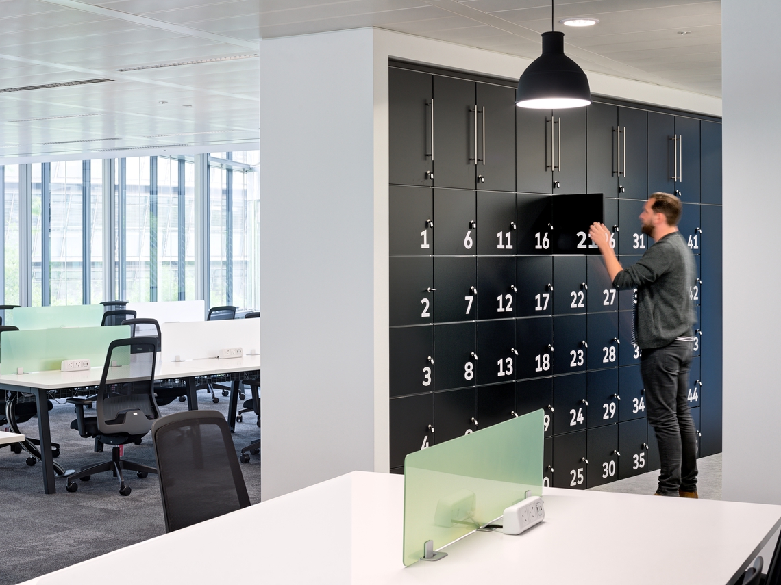 We worked alongside HKS Architects Ltd in designing a fun, functional, creative and inspiring workspace by providing our Sorted Storagewall – maximising storage space while seamlessly fitting into the walls of the workspace and our Hotlockers which were customised with large numbered graphics enabling staff to store their personal belongings securely throughout the day.
