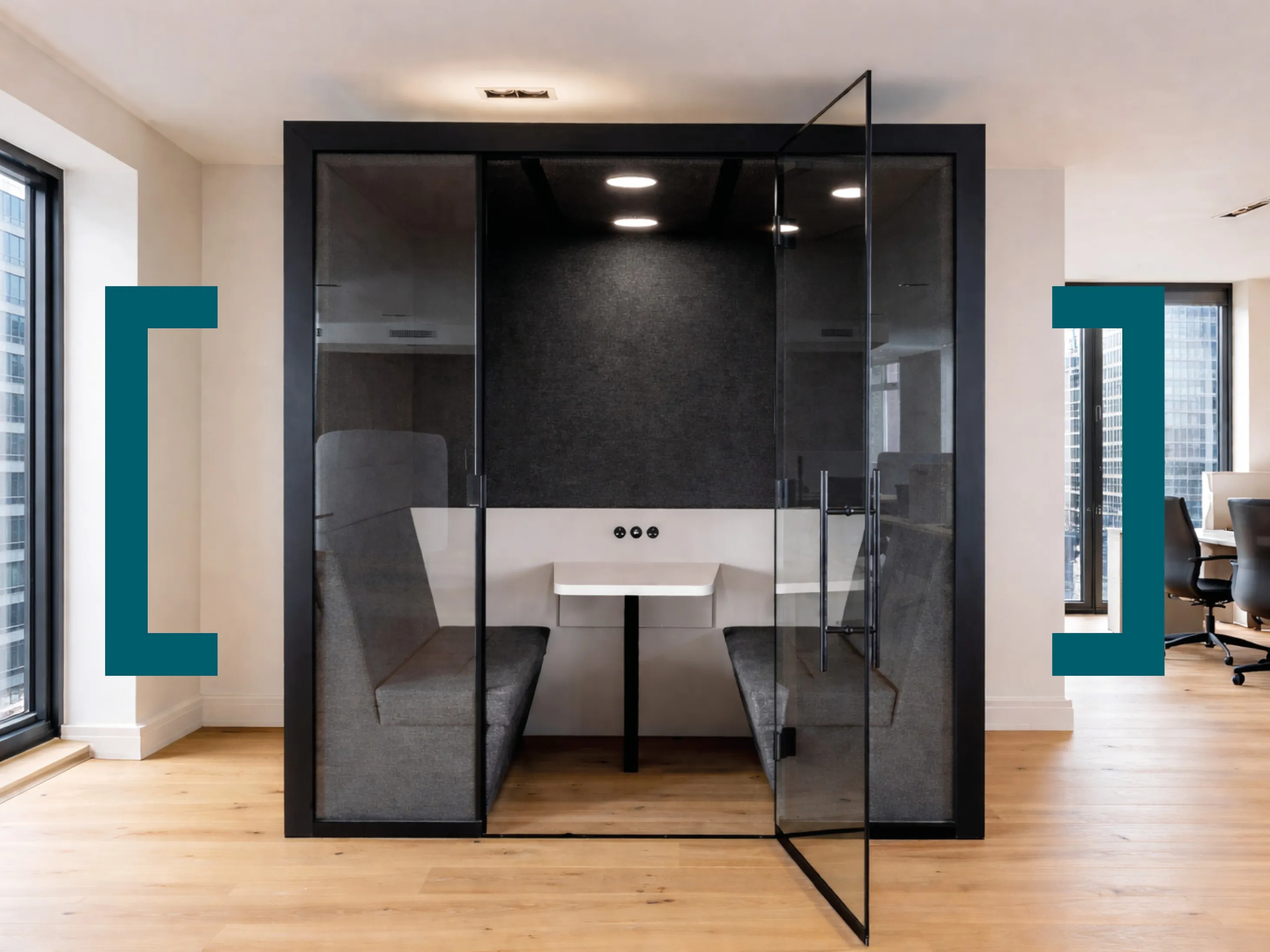 A quality plug-and-play meeting booth to collaborate and socialise. 81”w x 53½”d x 88”h